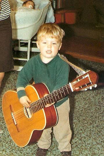 “I was three years old in this photo and making noise on my dad’s guitar while my mom was playing violin. I didn’t start to really learn to play until I was 6 years old. We had many guitars lying around the house but my first guitar, the one that was given to me, was an acoustic Buck Owens model that was red, white and blue. My mom was performing with Buck Owens at the time. He was a big country star during the ‘60s and ‘70s. The Owens guitar was a birthday present for me when I turned 8 years old.
